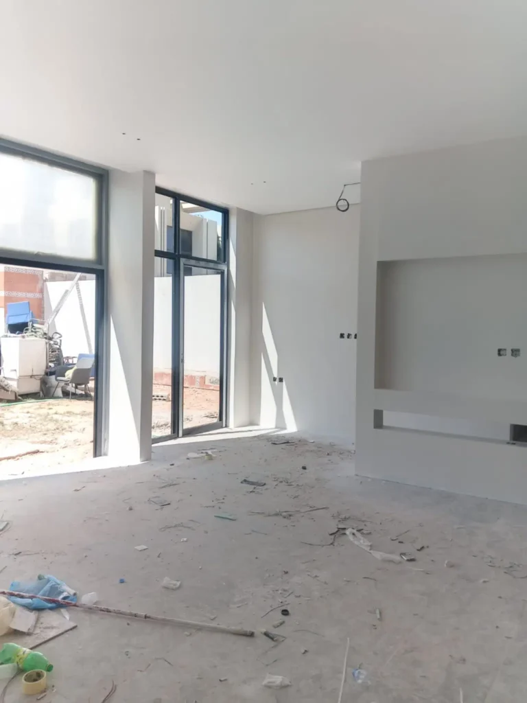 من الجوانب المهمة التي تعكس احترافية معلم الدهان تغطية الأرضيات، النوافذ، والأبواب بالبلاستيك الواقي قبل بدء العمل، واستخدام شريط لاصق خاص لحماية الزوايا، ثم تنظيف الموقع بالكامل بعد الانتهاء، مما يعطي انطباعاً راقياً ويجنب العميل أي أضرار جانبية.